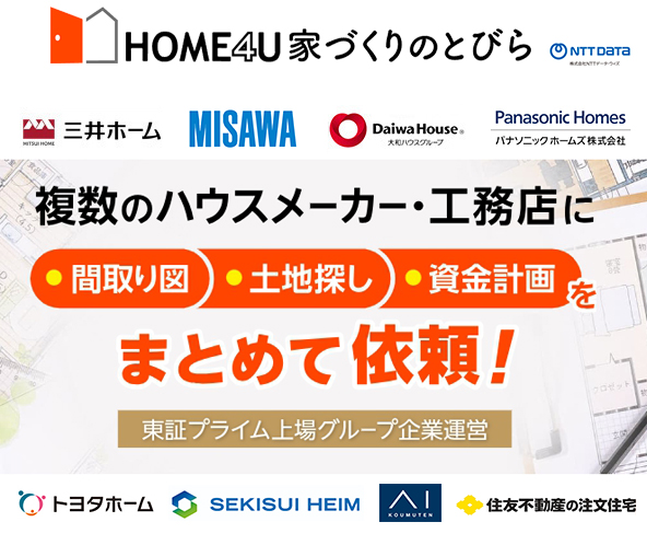- 全国約1,100社以上の住宅メーカーから、「間取り」「見積もり」がもらえる